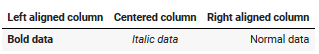 You can also align columns by placing colons in the header underline. A colon of the right means right aligned, on the left means left aligned and one on each side is centered. Here's an example: