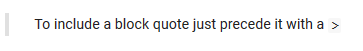 If you want to include a code block use three backticks or ~ characters to enclose the code like this: